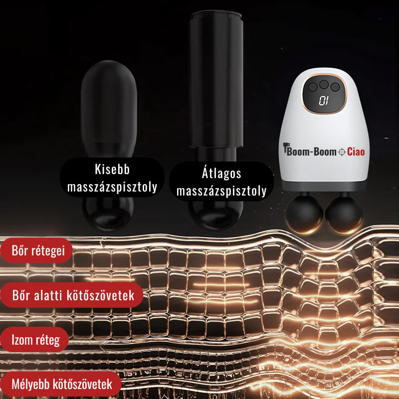 A Boom-Boom Ciao több mint egy egyszerű masszázspisztoly – egy eszköz, amely segít enyhíteni a mindennapi stresszt és izomfájdalmat, miközben hozzájárulhat a gyorsabb regenerálódáshoz. Célunk, hogy mindenki számára elérhetővé tegyük a professzionális masszázs élményét, ami segíthet a hosszú távú jó közérzet elérésében. Minden részletében a minőséget képviseli; tartós anyagokból, gondos tervezéssel készült, hogy megbízható társad lehessen a stressz enyhítésében és az izomfájdalmak csökkentésében.